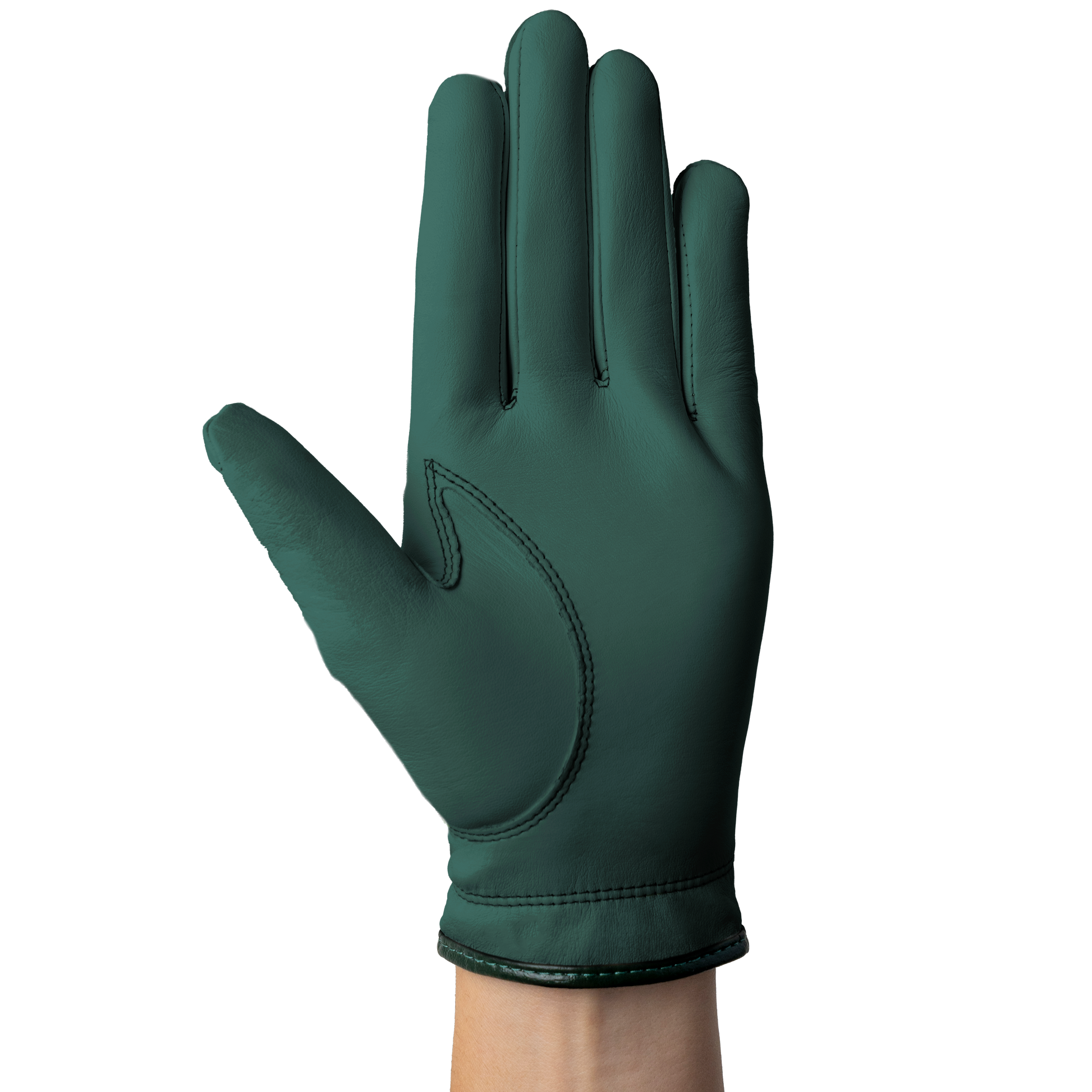 The Men's green glove with white leather trim, crafted from premium Cabretta leather.